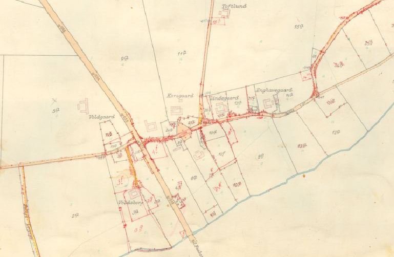 Byens gårde delte jorden mellem sig, således at hver gård fik sine marker liggende nogenlunde samlet i blokke ude på markerne, og indimellem placeredes enkelte huse og husmandsbrug. Volderslev havde således op til ca. 1870 15 gårde, heraf lå de 4 vest for Volderslevvej og de 3 ude på markerne.